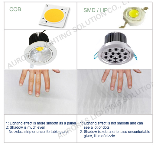COB LED là đa chip đóng gói, nó có thể tăng diện tích chiếu sáng lên 10 lần, vì vậy nó tránh chói tối đa. Nhiều công ty sản xuất sử dụng kích thước nhỏ của chip để làm gói COB LED.