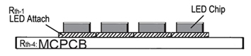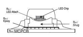 Tổng số kháng nhiệt cho COB LED là tổng của đèn LED đính kèm và PCB, không Slug, Epoxy. Rth-tổng = rth-1 + rth-4